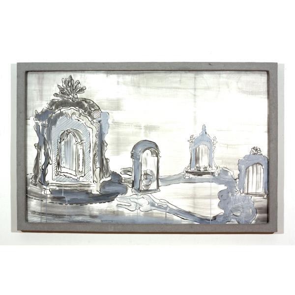 MediumChinatusche auf Papier, Styroporträger, Papiermachérahmen
