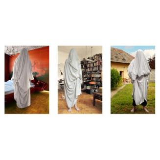 In der Installation werden die Videoarbeiten Chor und vier Reden auf einander gegenüberliegende Wände projiziert, die ProtagonistInnen treten abwechselnd in Aktion. Der Perspektivenwechsel – vom Close-up im Video vier Reden zur Totalen in Chor – ist auch auf räumlicher Ebene zu verstehen. Der um ein Vielfaches größere Hauptraum wird in das zu einer Black Box verwandelte Grafische Kabinett buchstäblich projiziert. Mit der räumlichen Zusammenführung wirft Miriam Bajtala die Frage nach der jeweiligen Charakteristik sowie dem Repräsentationscharakter des Raumes auf: Das Erhabene des White Cubes konfrontiert sie mit der Intimität des Grafischen Kabinetts.