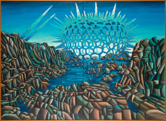 DescriptionFrancis Ruyter works with issues of style and recognition behind image-making, and connects this activity to social and technological forces driving contemporary experience and historical archiving. In 2008, he began replacing his own photographic source material with the Library of Congress’ FSA/OWI archive of depression era photographs, conceptually locating ‘the archive’ as subject matter.This painting is part of a series of works using images sourced through the search term ‘machine.’ Machine vision is becoming an increasing factor in our image processing systems, to the point that it becomes uniquely human to process the image into the fixed forms that we are familiar with. But what does it mean when a machine looks at a picture? We often assume that a picture is the representation of a form and not the other way around but at this point, this might be a dangerous assumption. Predictive technologies need human interventions, because they are written on top of the artificial intelligence that is our own human history, and there might be parts of that which we might not want to leave to the machines to bring with us into the future.