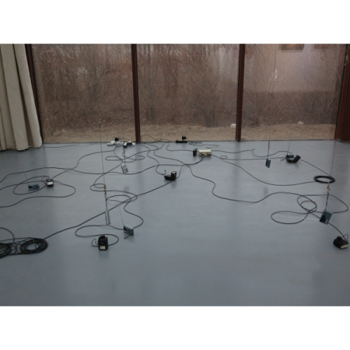 DescriptionFlash ist eine audio visuelle Installation / Intervention für Kamerablitze, AM-Transmitter und tragbare Radioempfänger, die auf Radiofrequenzen, elektromagnetische Felder und auf Störungen im Stromnetz reagiert. Sie wurde für Heiqiaocun ‘last exhibition’, Black Bridge Village in Beijing entworfen, bevor der gesamte Stadtteil abgerissen wurde. Die Lichtblitze interagieren mit dem elektromagnetischen Feld und beeinflussen dadurch das von den Radioempfängern abgenommene Signal. Die im Stromnetz von Beijing häufig auftretenden Spannungsschwankungen bringen den Radiosender aus der Resonanz und erzeugen ein instabiles, fluktuierendes auditives Netzwerk.Text: Paul Gründorfer