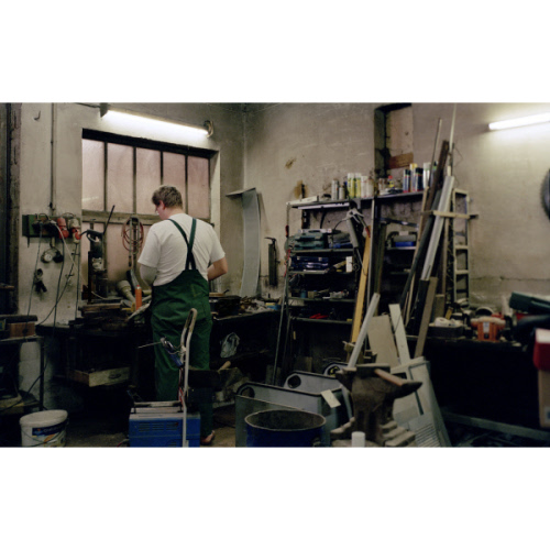 Die inszenierten Fotografien der Arbeit KOLLEKTIVE FIKTION nehmen Bezug zu Film wie auch Malerei, insbesondere der malerischen Darstellung von Interieur. Formal bestimmt sie der Dialog zwischen Raum und Person als auch die bewußt gelenkte Unschärfe, welche unter Verwendung einer Großformatkamera gezielt eingesetzt wurde.