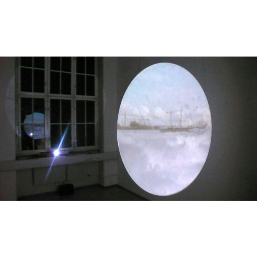DescriptionEvolution, development and natural phenomenons are central themes of the video installation "Something about Nature and Evolution". On a round surface the drawing is showing elements of diagrams overlapping with scenes of nature, plants, the underseeworld but also related forms of evolution theory, math and astrology. All elements are placed on the structure of a tree, interpreted in different ways. On one hand as a real tree with roots and branches, on the other like the so called "hillis tree" which is illustrating in schematic way the development of life. Starting from the center of the circle, ending up in branch-like structures on the edges, which again turn into the shore line of a coast.On particular parts of the drawing video sequenzes are projected and due to the crossfading of the video some parts double themselves or let them disappear. Birds are flying around the roots, fish schools are appearing in the very treetop. Exotic plants are turning into waves and the boundaries between diagrams and real scenes disappear. Everything is influencing everything and welters in circles of water and lines.
