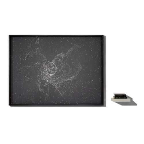 DescriptionNach Millionen von Jahren entsteht aus einer Supernova ein Schleiernebel, aus dem wiederum nach vermutlich weiteren Millionen Jahren neue Sonnen und Planeten entstehen, auf denen vielleicht Leben entstehen könnte.Das Werk „Genesis II“ (Schleiernebel) bezieht sich auf das Buch Genesis in der Bibel, in dem die Entstehung der Welt beschrieben wird. Jochen Höller nimmt diese Textstelle aus der Bibel und zerlegt sie sprichwörtlich in ihre Bestandteile. So werden die Buchstaben, Satzzeichen und Nummern zum Material für Höllers Collage. Mit etwa 12.000 Buchstaben zeichnet er einen tatsächlich existierenden Schleiernebel nach, welcher vom Hubble-Teleskop im Jahr 2016 aufgenommen wurde.